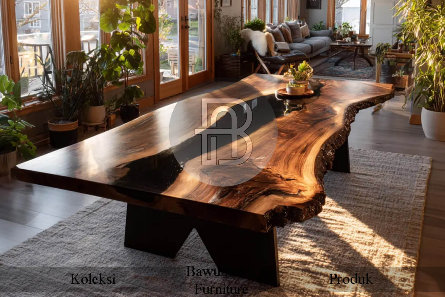 Meja kayu suar jumbo modern kombinasi resin new design BA-290 desain minimalis elegan akan mempercantik ruangan anda.