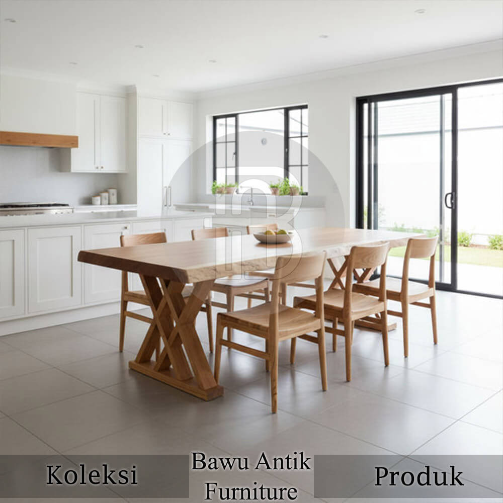 Meja Makan Jati Kursi 6 Minimalis Waterbase Rustic BA-592