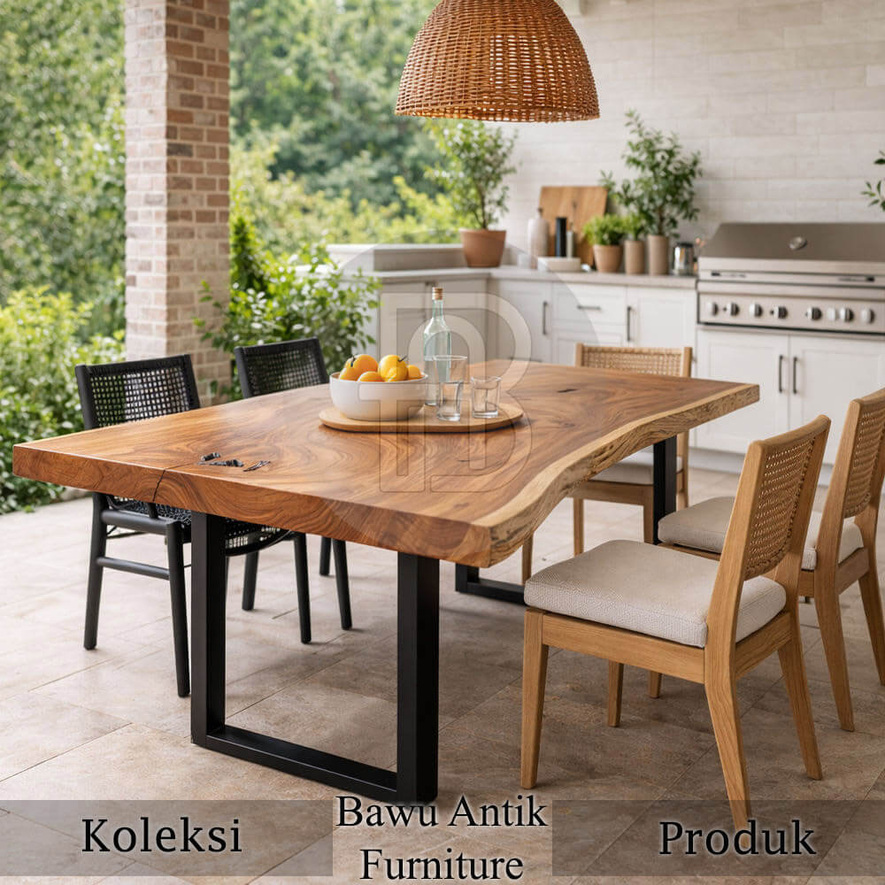 Meja Makan Kayu Solid Trembesi Industrial Design BA-609