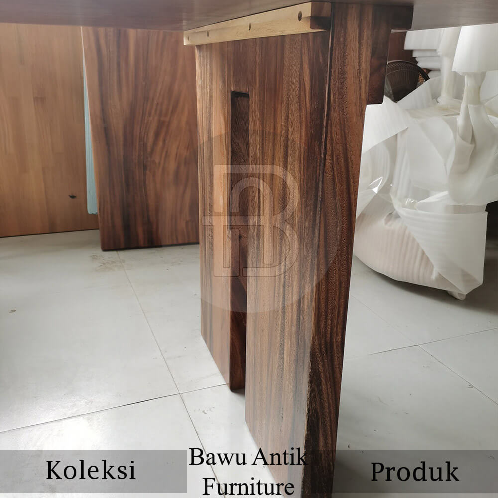 Meja makan kayu trembesi natural live edge glossy BA-506 ini dibuat dengan bahan baku kayu jati/mahoni/trembesi TPK Perhutani pilihan yang sudah kering. Dengan kontrol kontruksi yang dikerjakan oleh tangan ahli di bidang pembuatan produk furniture, sehingga meja makan minimalis ini bisa kokoh dan awet hingga bertahun-tahun. Kayu jenis ini juga punya serat yang sangat bagus. Sehingga furniture dari kayu jati atau mahoni bisa awet dan tahan hingga bertahun-tahun.