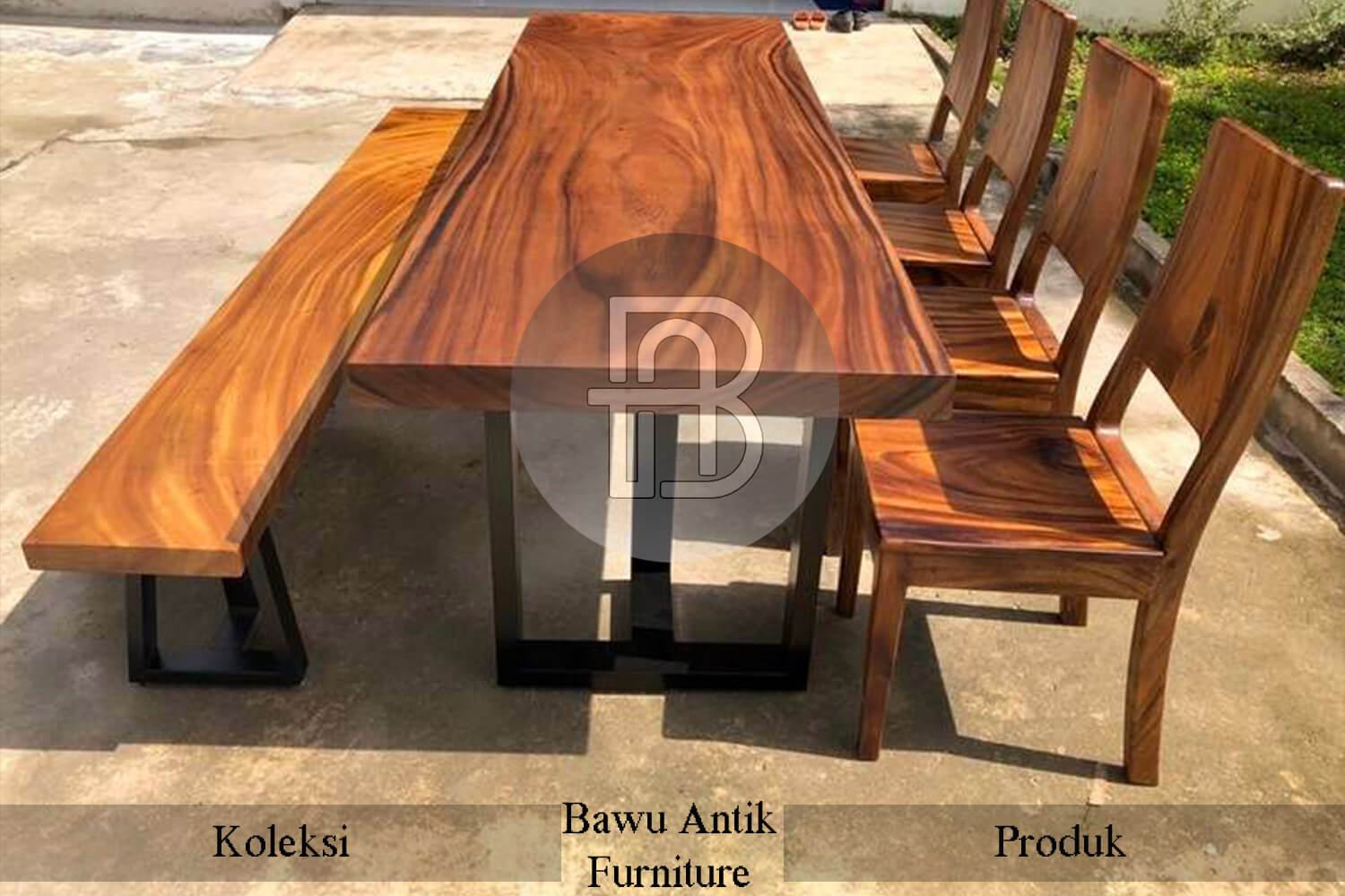 Meja Makan Kayu Trembesi Solid Minimalis Natural Slab Design BA-503
