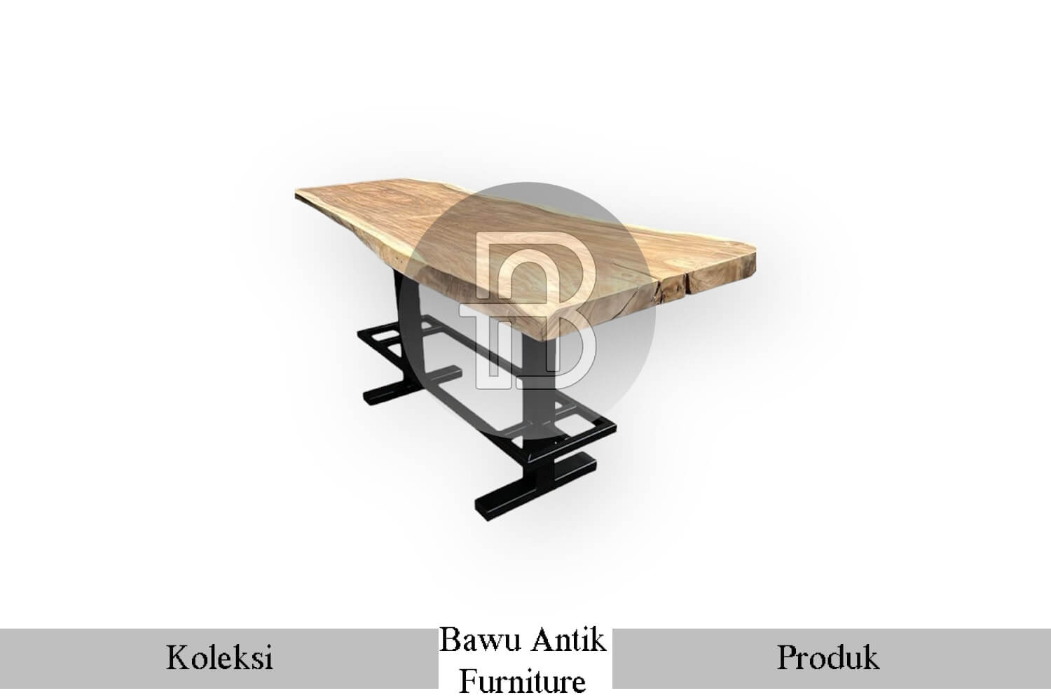 Meja Makan Minimalis Modern Industrialis Daun Kayu Trembesi Solid BA-249