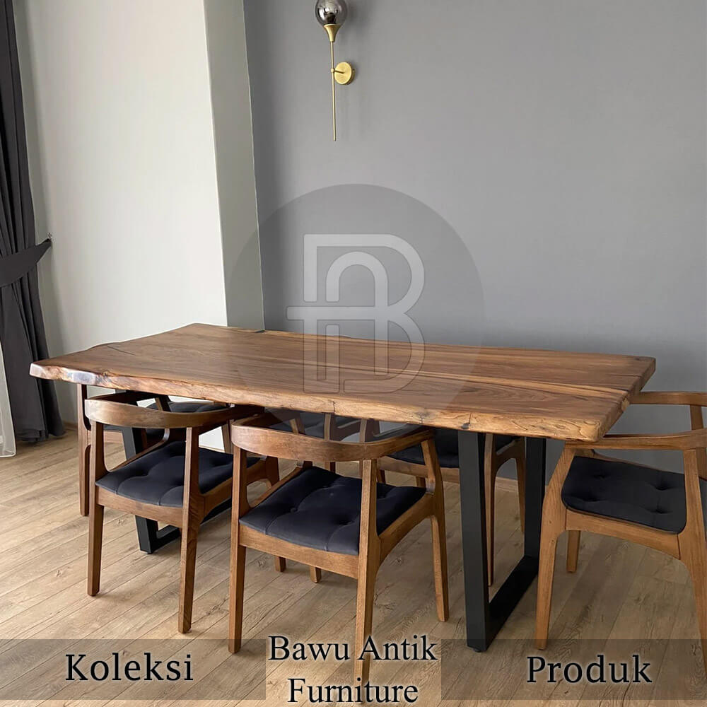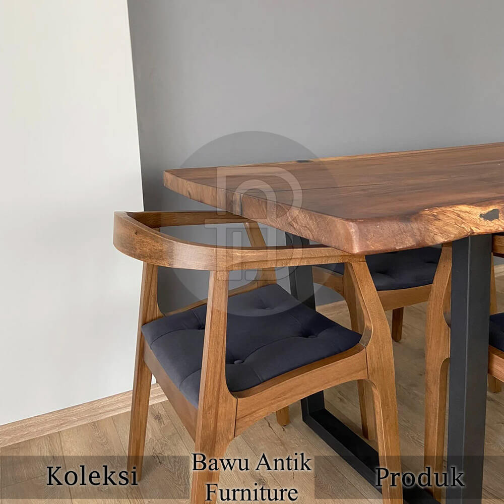 Meja makan solid trembesi kursi jati hiroshima BA-595 produk dengan desain elegant minimalis serta menonjolkan serat alami kayu itu sendiri.