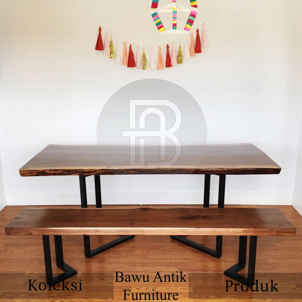 Meja Makan Trembesi Kayu Solid Desain Elite Kaki Stainless BA-474