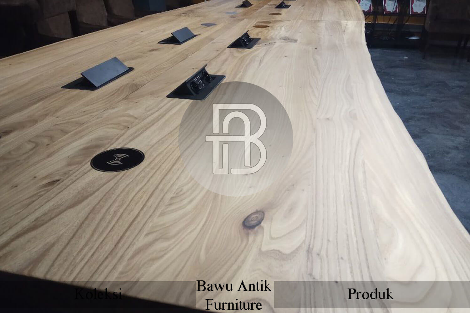 Meja meeting panjang kayu utuh full accesoris yang berbahan baku kayu utuh dengan kualitas terbaik akan memberikan kesan artistik pada ruangan interior anda.