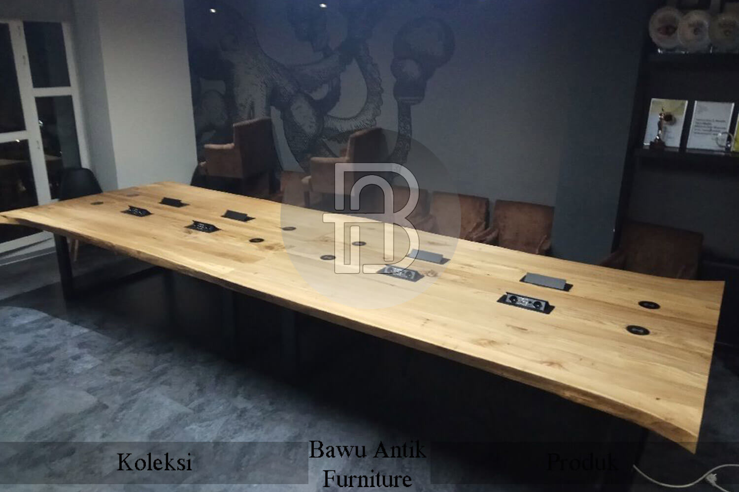Meja Meeting Panjang Kayu Utuh Full Accesoris Kaki Besi Furniture Jepara BA-328